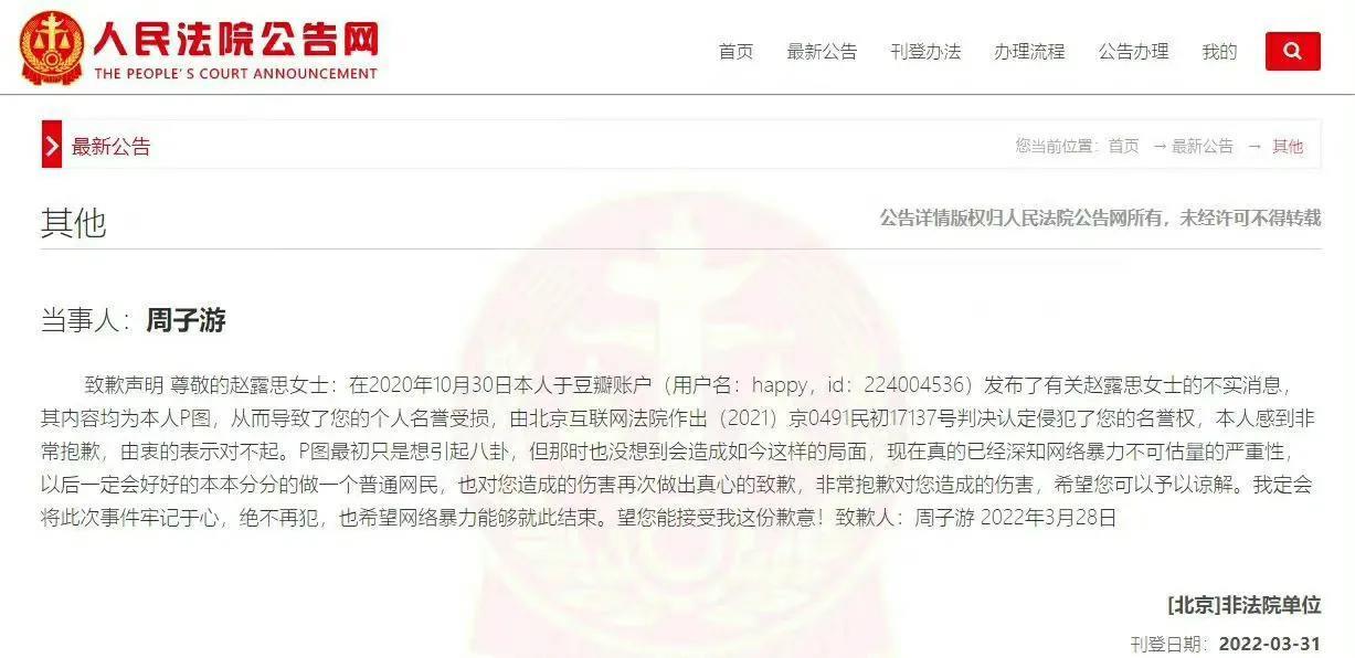 但就在观众以为真的过去了的时候,赵露思突然一纸诉状,把造谣人告上了法庭。