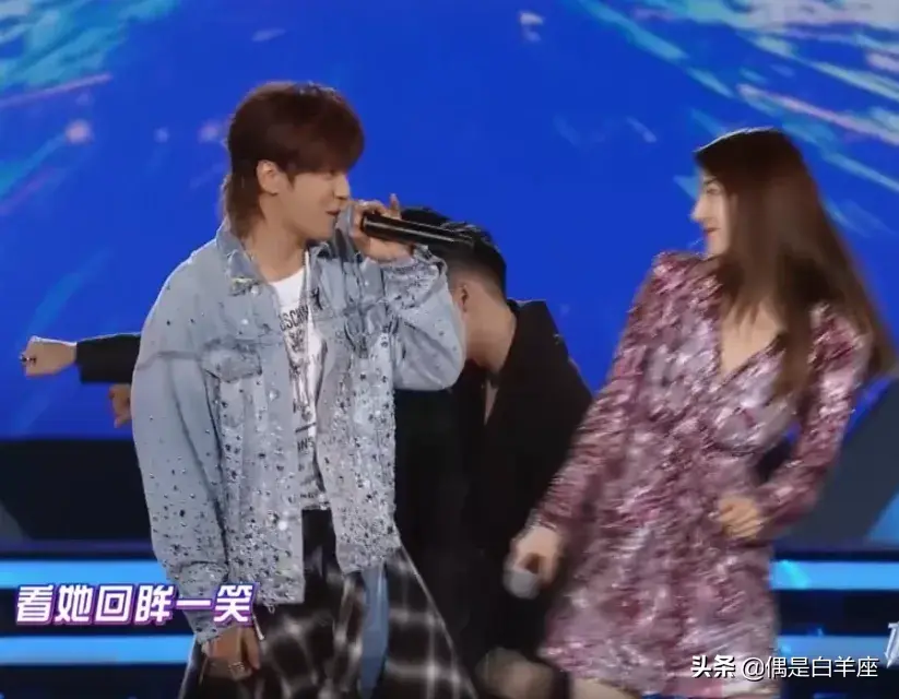 当他们两个人在舞台上边唱边跳的时候,小猪经过热巴身后,谁注意热巴的反应了?堪称教科书,只见热巴立马一个侧身回头,表现出了“蓦然回首”的一幕,看上去又美又飒。