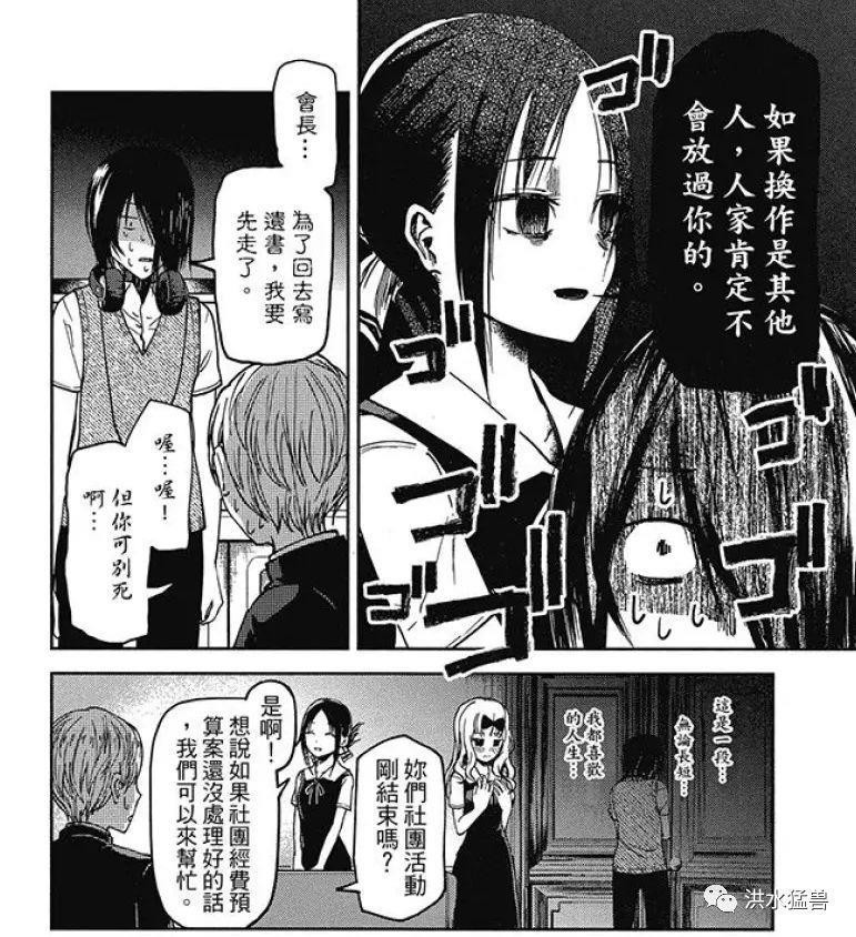 作为漫画中的第二男主角(虽然漫画里一共也没出现几个男主角),我们的石上同学具有十分敏锐的洞察力,他甚至发现了辉夜那浓烈却隐蔽的杀意。
