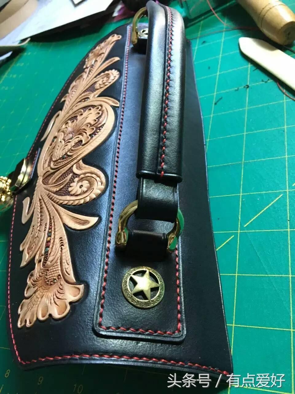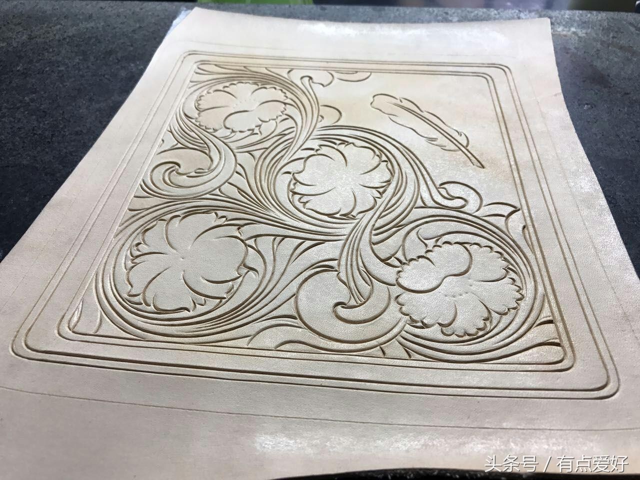 今天有朋友留言问我什么是皮雕,皮雕就是在牛皮上雕刻图案,图案有人物、动物、花卉等绘画的传统图案,还有一种皮雕的特殊图案,我们叫唐草图案。下面以唐草图案为例给大家简单介绍下皮雕的过程和应用。用作皮雕的牛皮一定要原色植鞣牛皮,厚度在1.5mm以上。
