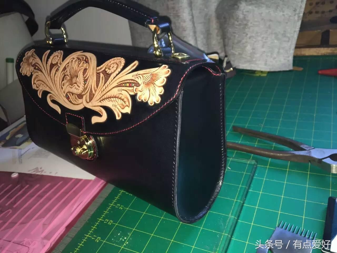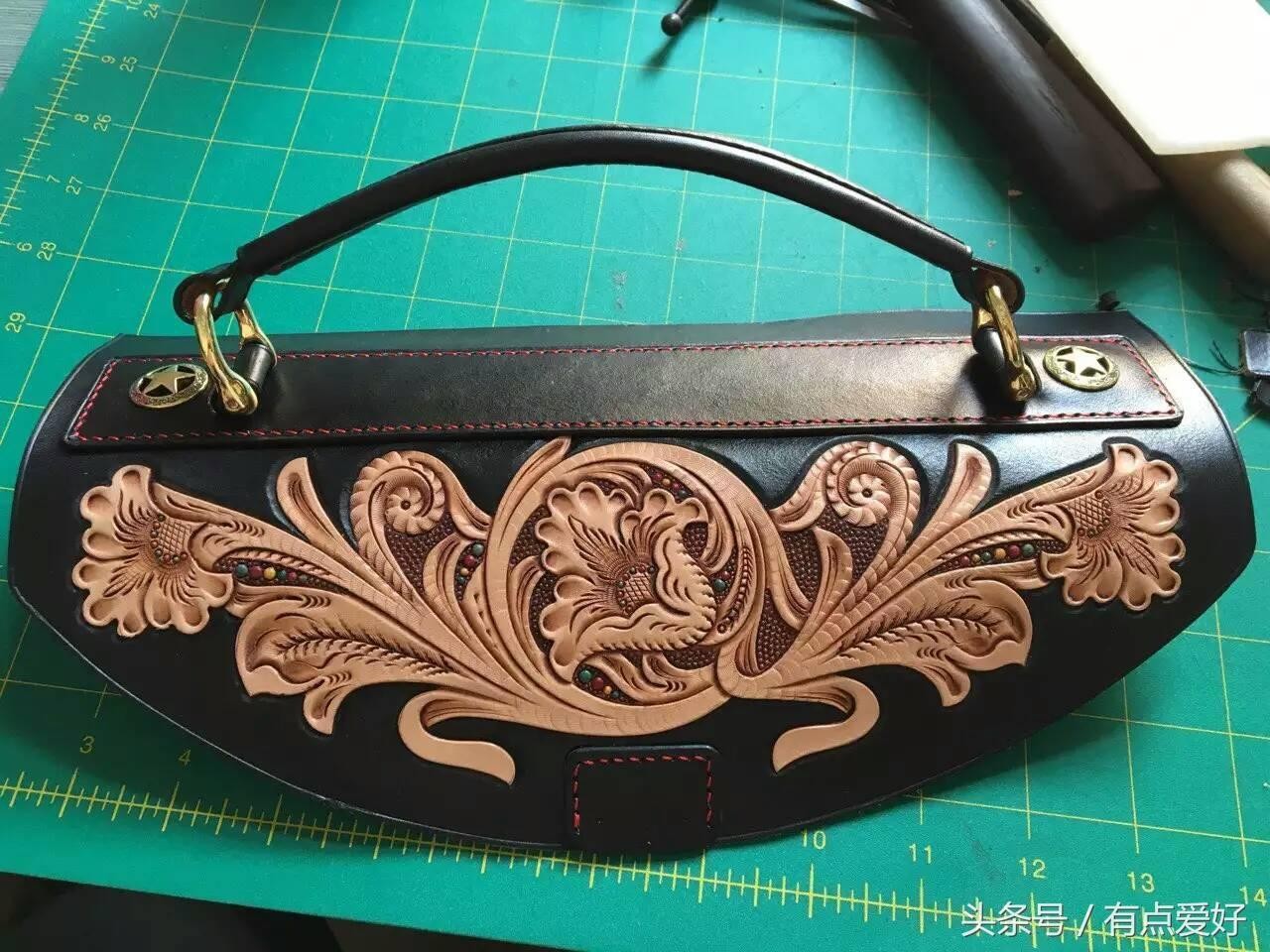 这样,一个原色植鞣牛皮的全手工皮雕包就制作完成了。制作时间一个人要四到六天。