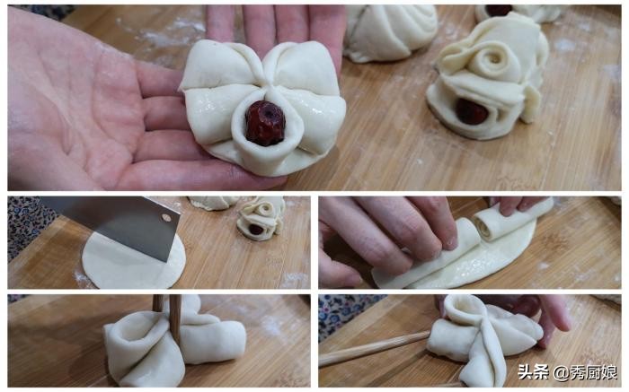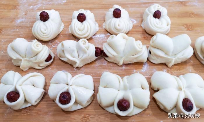 蒸枣花馍馍,用的主要材料是小麦面粉,辅料是大枣,枣花馒头是流传于黄河流域很多地方的春节风俗。枣花馒头又是山东过年必做的一道新春面食,传统的枣花馒头个头大,做法复杂,很多朋友都看不懂怎么做。今天,厨娘和大家分享几款,简单好看又小清新的枣花馒头的做法,喜欢的朋友一定要试试。