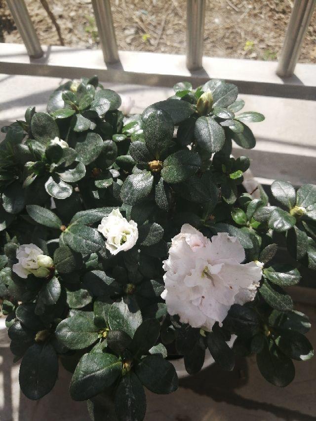 白杜鹃是纯白色的,花朵和叶子交错着,这种花已经比较少见了。