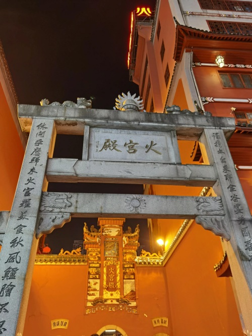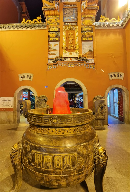 说起坡子街,不能不提的火宫殿。清乾隆十二年(1747年),坡子街兴建火神庙,即今天的火宫殿。那时,凡与火有关的行业,如陶瓷、冶铸、糕点、铁匠、鞭炮、烟花、砖瓦等行业,都把火神供奉为祖师。