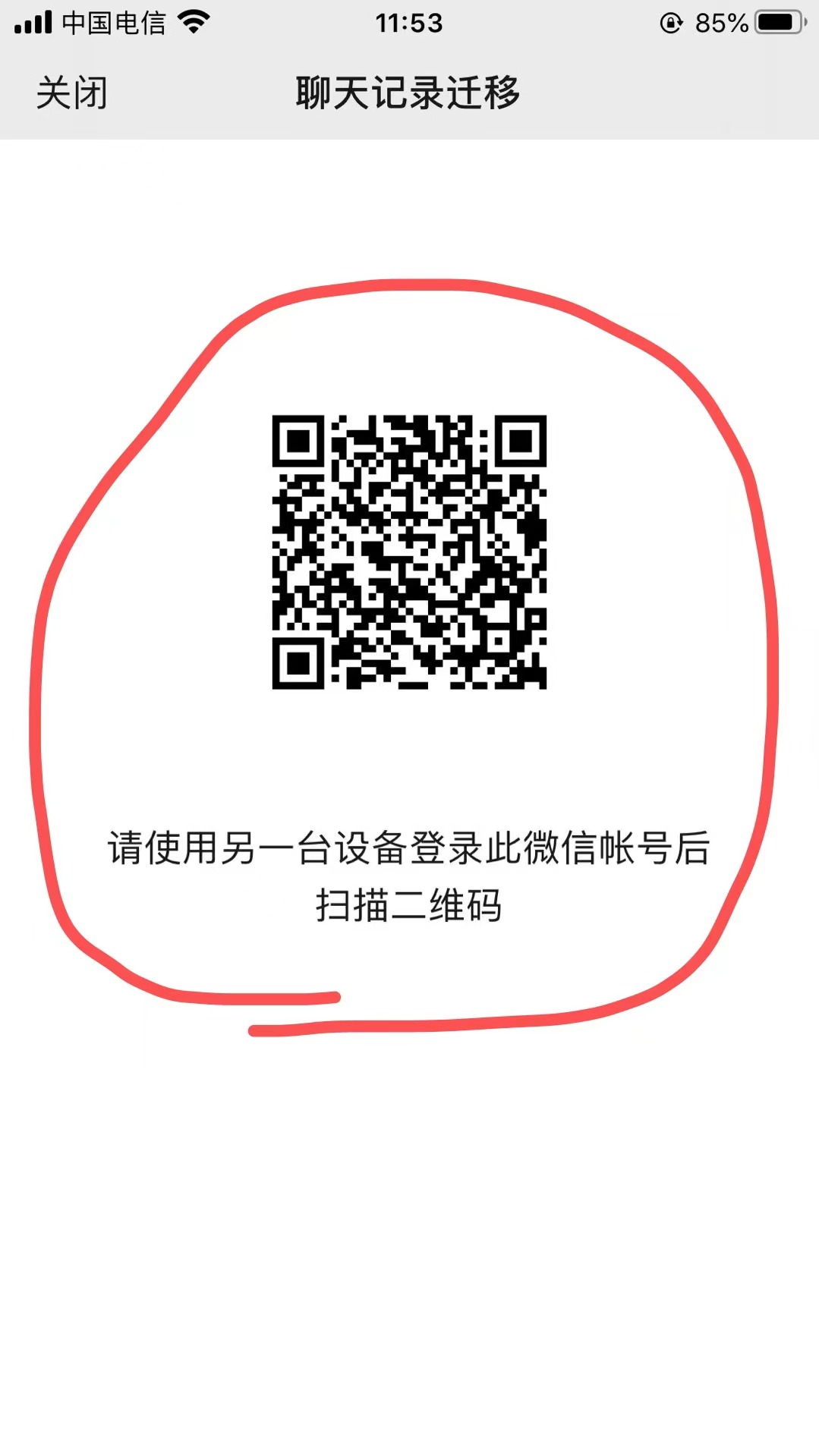 到这里就会生成一个二维码,然后新手机登录上去微信,用扫一扫功能直接扫描这个二维码就可以,等待传输完,点击完成就可以(传输过程中,请保持屏幕亮屏,不然有可能会中断)。