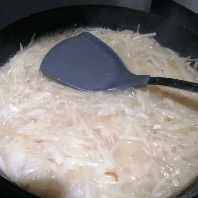 5、炒至断生后加入开水,煮开后调中小火熬至奶白色!