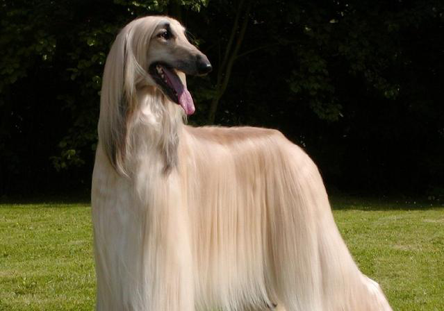五、阿富汗猎犬。阿富汗猎犬是现存最古老的犬种之一,它身姿优美,长长的毛发仿佛一身飘逸的长发,但是打理起来却很麻烦。在现代,阿富汗猎犬时尚复古的外形已成了高贵的代表。