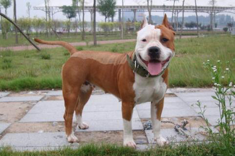 四、美国斯坦福德梗。斯坦福梗由斗牛犬与梗犬杂交而成,起初叫斗牛犬、牛梗杂交犬。斯坦福梗外形壮硕,肌肉发达,食量大,而且性格暴躁,一般养斯坦福的人从不白天遛狗,因为容易误伤到其它狗狗。