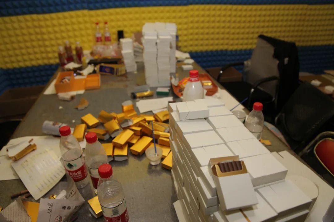 2021年8月30日,对该团伙进行收网打击,先后抓获涉嫌制售假冒注册商标的犯罪嫌疑人刘某、苏某等18人,当场查获用于制作假烟的打印机、电脑多台,查获大量用于制作假烟的烟用锡箔纸、烟用薄膜、烟用标签等材料,以及大量成品假冒卷烟,涉案价值预估约1500余万元。目前犯罪嫌疑人刘某等14人已依法刑事拘留。