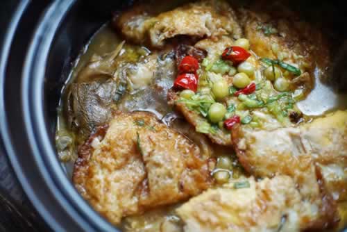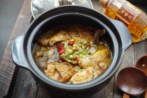 如此做出来的黄骨鱼味道真是太鲜香了,鱼肉鲜嫩甜美,煎的鸡蛋也是吸尽了汤汁的精华,咬一口满嘴都是汁液,美味可口,吃到最后汤汁都不想丢弃,加点开水,当作鱼汤吃很好吃。如此好吃的鱼煲,午餐菜品怎么能够少了它呢,年年有鱼是必须的。