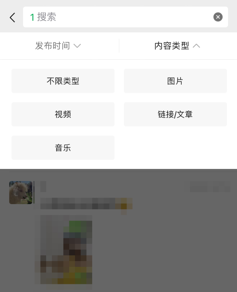 还可以按照关键字查找朋友圈内容