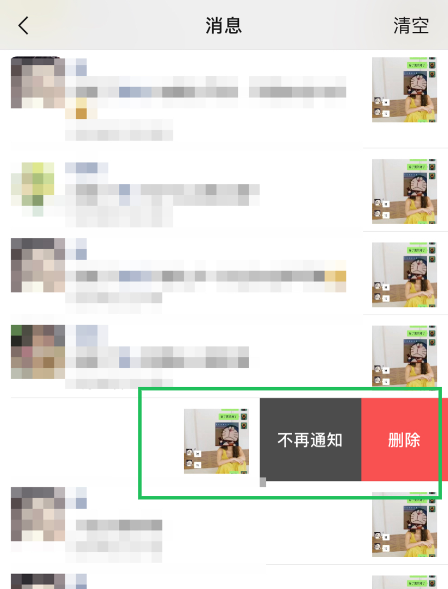 左滑(ios)或者长按(安卓),选择「不再通知」