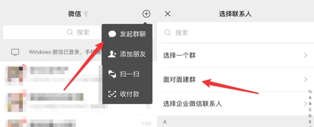 「+」-「发起群聊」-「面对面建群」