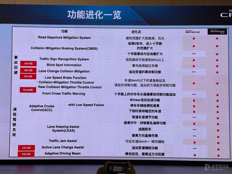 相比原有的Honda SENSING,在智能辅助功能方面,新车增加了十字路口预碰撞、变道自动紧急制动、弯道车速调节、无车道辅助线追随前车、以及打灯自动变道等功能。总体升级无论是实用性、安全性,都有了极大的提升。