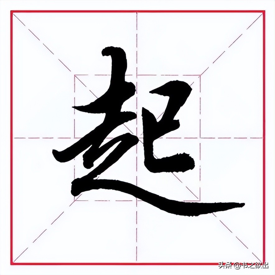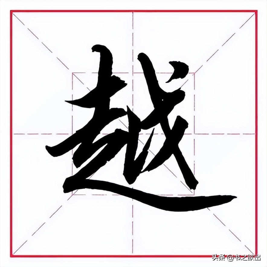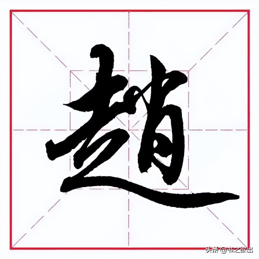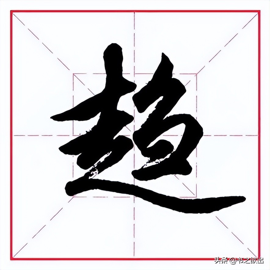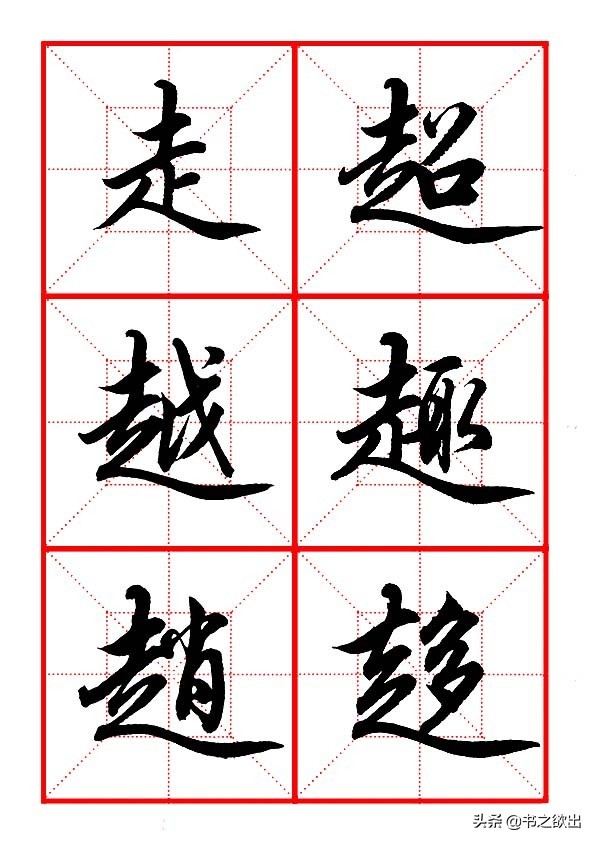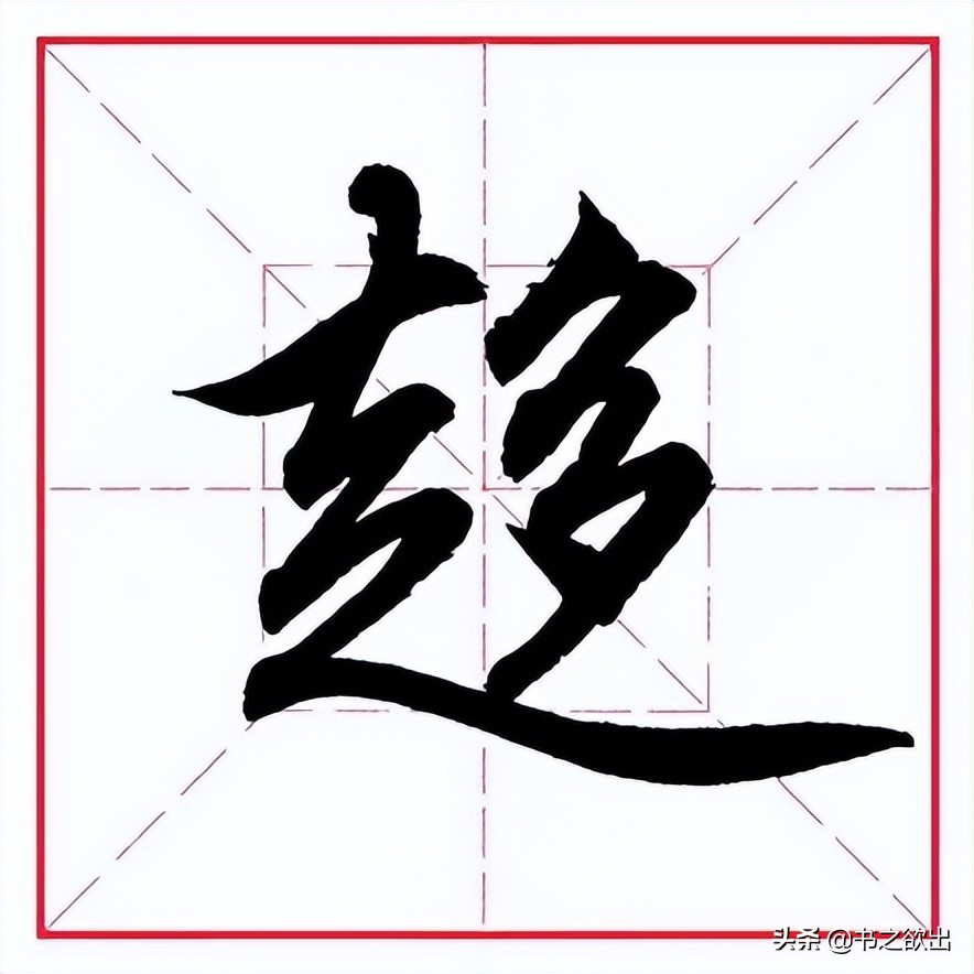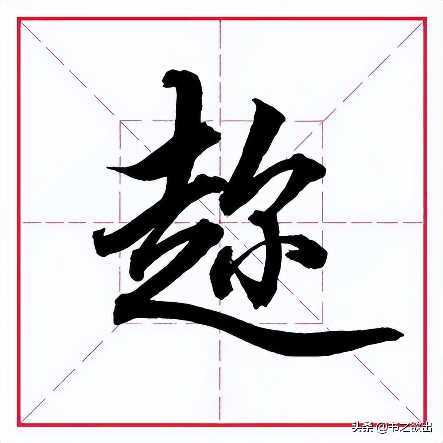 行书中走字旁书写时更加流畅连贯,其多作为偏旁居于字左,在字中呈半包结构。捺笔起承托作用,势平,舒展流放,其刀锋的起笔为关键。起笔过早平捺就会显短,不能有力地托载上方;起笔过晚则显长,从而与上部失去协调。