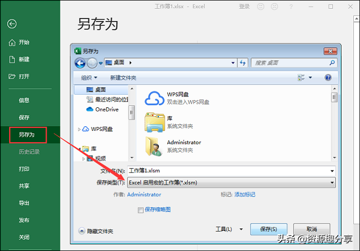 1、首先在Excel中录制宏,然后点击“文件”中的“另存为”,接着设置文件保存类型为“Excel启用宏的工作簿”,然后点击确定就可以了。