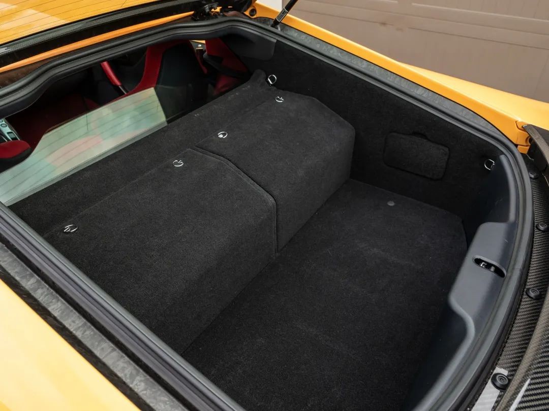 红色Alcantara用于座椅和车顶内衬,方向盘配有红色的皮革。仪表盘和中控台则使用黑色Alcantara材料,并配有鲜明的红色缝线。与所有纽博格林版一样,内饰充满了大量的碳纤维装饰。