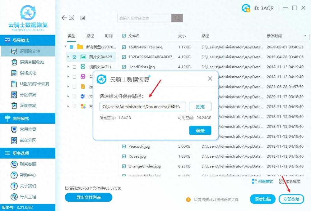 软件版本:云骑士数据恢复软件 3.21.0.92