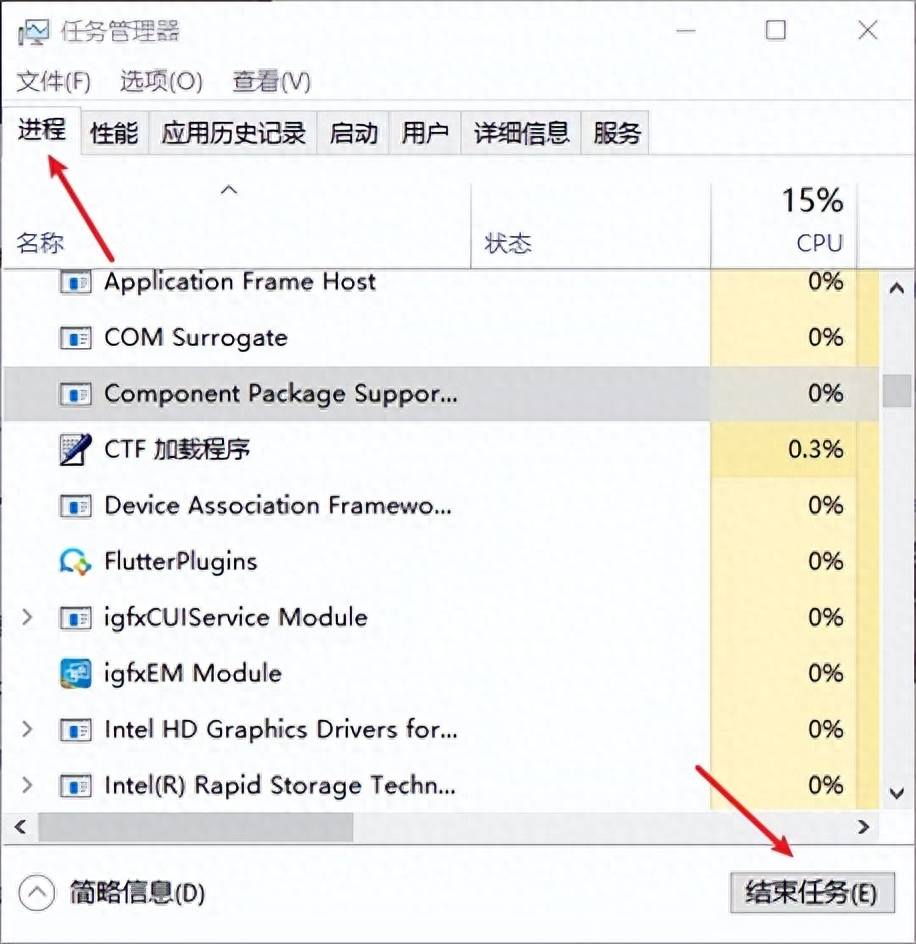步骤2:依次浏览“进程”选项卡,选中不必要的程序或任务,然后点击“结束任务”按钮来关闭它们。