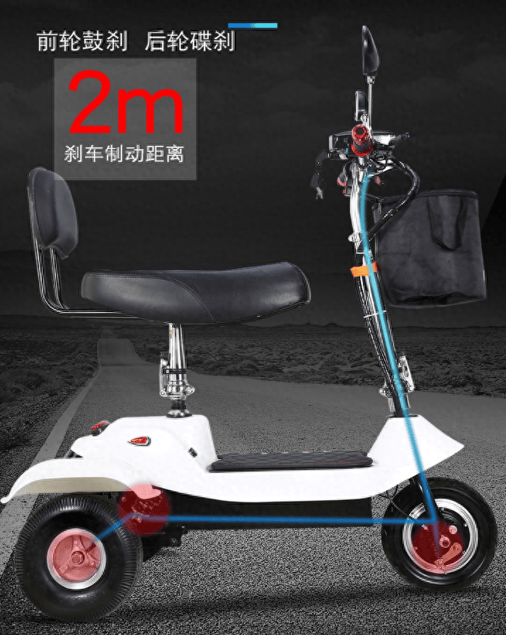 该车的安全系数非常高,首先是最快只有10km/h的时速,本身就非常安全,是70岁以上老年人也能驾驭的,其次,车辆配置前轮鼓刹,后轮碟刹,刹车制动距离2米,灵敏刹车更安全。