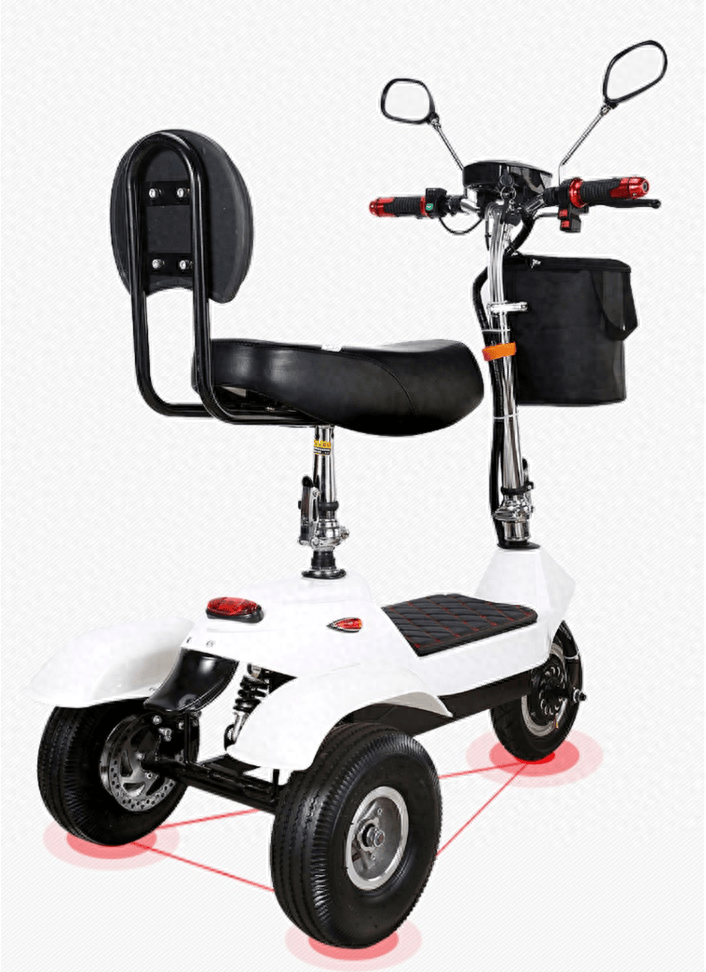 最后是许多人担心的三轮车容易侧翻问题,这款车虽然小巧,但采用三角稳定结构设计,具有很好的稳定性,骑行平稳,不受恶劣天气影响,相对来说很安全,此外,车辆还配置加宽轮胎,不仅减震,也加大了车辆行驶的安全性。