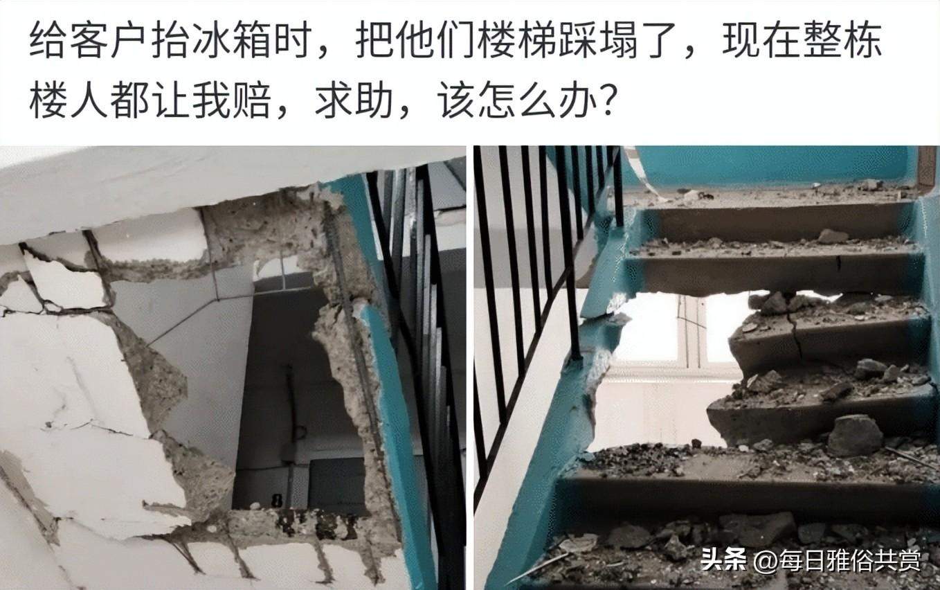5. 帮顾客抬冰箱结果把楼梯给踩塌了,整栋楼的人都要我赔,这该咋整