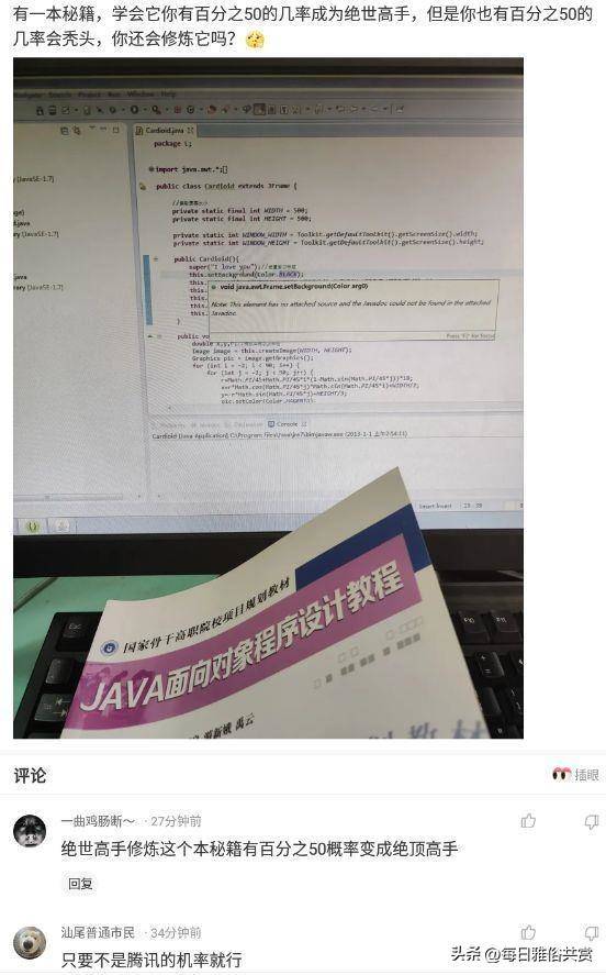 10. 有一本秘籍,学会它你有百分之50的几率成为绝世高手,但是你也有百分之50的几率会秃头,你还会修炼它吗?
