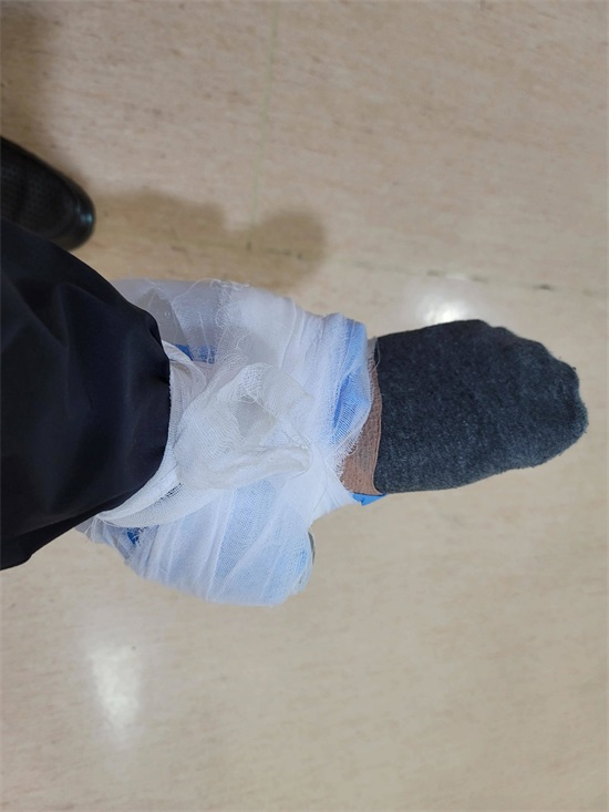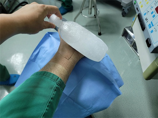 第2步立刻冰敷,因为是在医院内受伤,所以有这样子的条件。