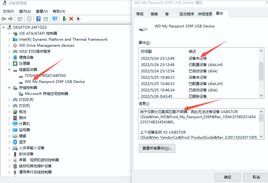 昨天电脑卡死,没有及时安全弹出硬盘,重启电脑后发现硬盘在电脑上不显示了(电脑是Win10系统),当时电脑上只显示了系统自带的存储盘,并且设备管理器里面显示硬盘的数据未迁移。硬盘自带的小灯也是亮的,而且插上时也有提示音,电脑右下角U盘显示图标中硬盘也是存在的,反复检查了连接线和出口重新插入,接着在百度上搜了好几种方法,终于解决了!