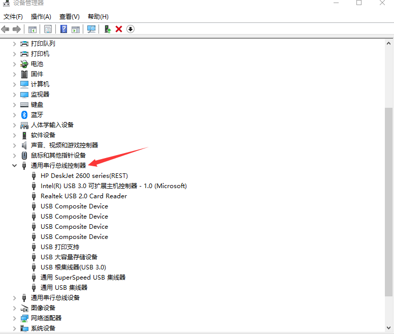 第一步:找到设备管理器中的 “通用串行总线控制器”
