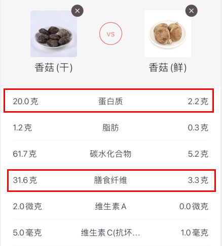 之前给大家科普过:干香菇和鲜香菇,哪种更营养?从下图来看☟晒干后的香菇蛋白质和膳食纤维含量翻倍,均是鲜香菇的10倍!