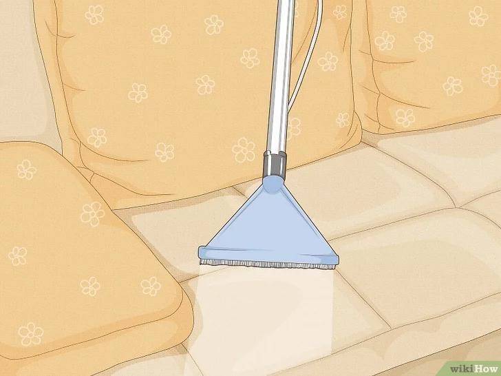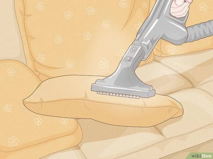 如果沙发上的靠垫拆不下来,或者不能接触水,就将吸尘器接上延长刷头,或者用手持式吸尘器将靠垫表面吸干净,稍后清洁沙发主体时,你也会用一样的方法,注意,靠枕两面都要吸,如果靠垫和抱枕拿不下来,就给整个沙发吸尘。