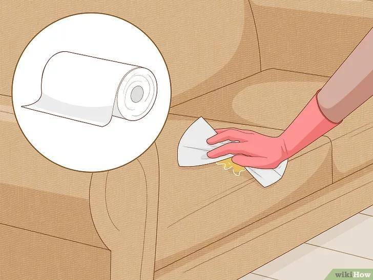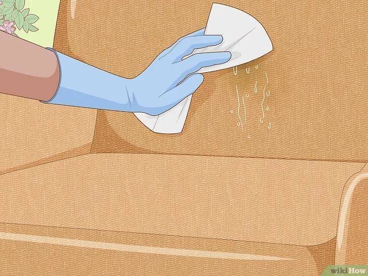 用柔软、吸收性好的干布轻轻按压沙发表面,将还没蒸发或被衬垫吸收的液体吸掉,如果沙发是皮革的,你可以把液体擦掉,因为皮革的防水性更好,如果沙发是布料或天鹅绒制成的,还是用按压的方法吸收液体,否则可能容易把软垫擦坏。