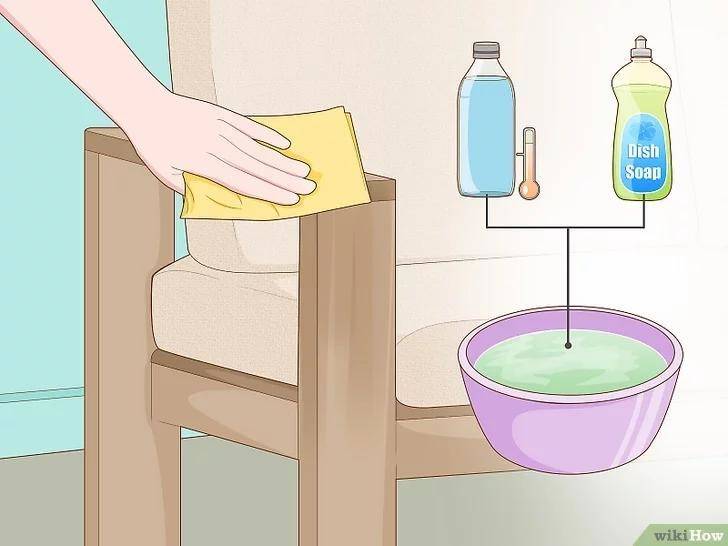 就算软垫不能接触水,沙发其它部位还是可以用水清洗的,把温水和洗碗液配置成溶液,倒在干净的抹布上,把沙发腿以及其它由金属、木头或布料制成的部分用抹布擦干净,用干净无水,有吸收性的抹布把之前擦过的部分擦干净。