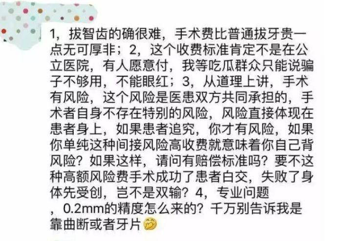 真真假假,假假真真。智齿是否值上万元的价格,对这样的事情,我们无法做出准确的评估,还有待专业人士的评价。但毋庸置疑的一点是,拔除智齿,尤其是埋得深度较高,倾斜度不同,或者是下颌贴近神经管的智齿,收费程度肯定比普通拔牙要贵,这确实是真的