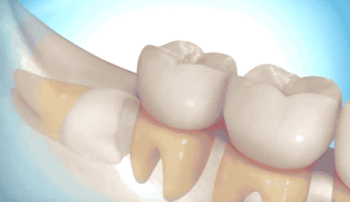 也是先切开牙肉,翻开并露出骨头,切下牙冠后取出,再处理下面的牙根。