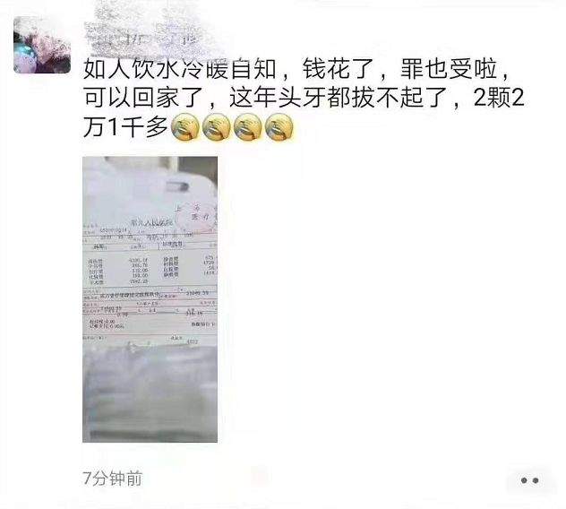 前几天,这样一组图片在网络上疯传——在图片中,大致描述的是某患者在上海九院拔除智齿,两颗智齿花费了约21000元(消息真实性有待确认,毕竟材料费、中药费比较让人费解)