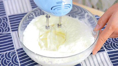 建议:打发速度过快,容易造成“奶油油水分离”,打发娇气的淡奶油可是要温柔点哦~