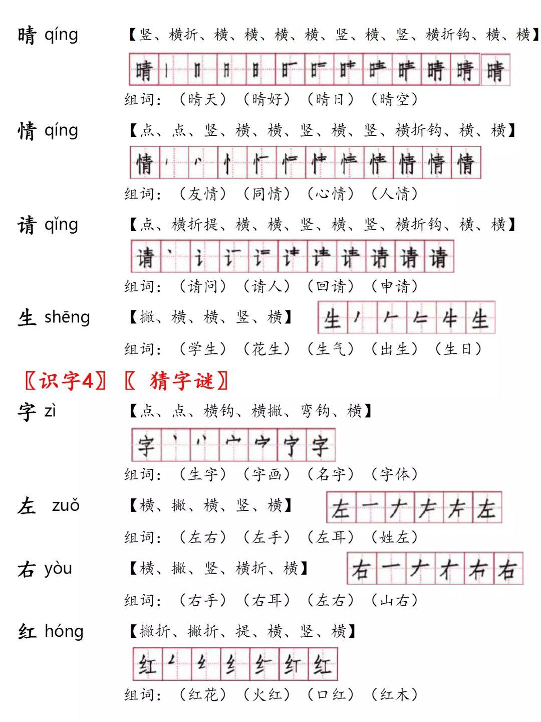 3 青 qīnɡ 清 qīnɡ 气 qì 晴 qínɡ 情 qínɡ 请 qǐnɡ 生 shēnɡ