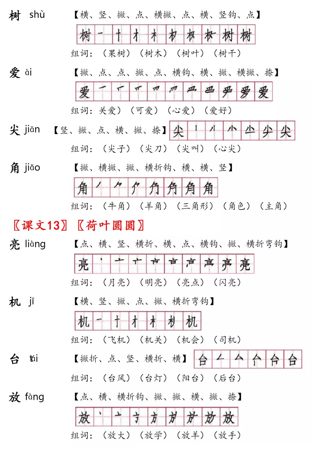 13 亮 liànɡ 机 jī 台 tái 放 fànɡ 鱼 yú 朵 duǒ 美 měi