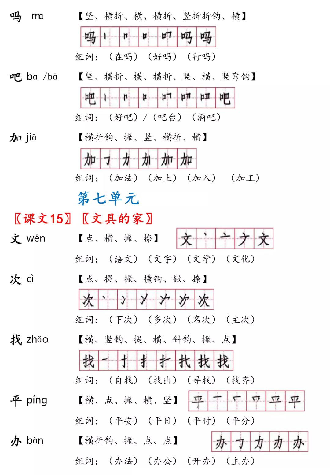 15 文 wén 次 cì 找 zhǎo 平 pínɡ 办 bàn 让 rànɡ 包 bāo