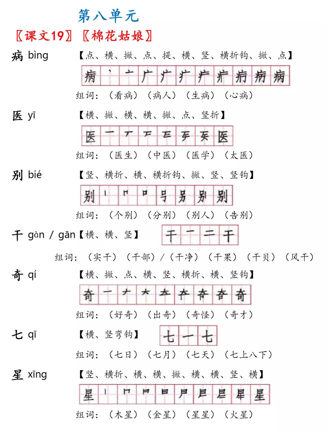 19 病 bìnɡ 医 yī 别 bié 干 ɡàn 奇 qí 七 qī 星 xīnɡ