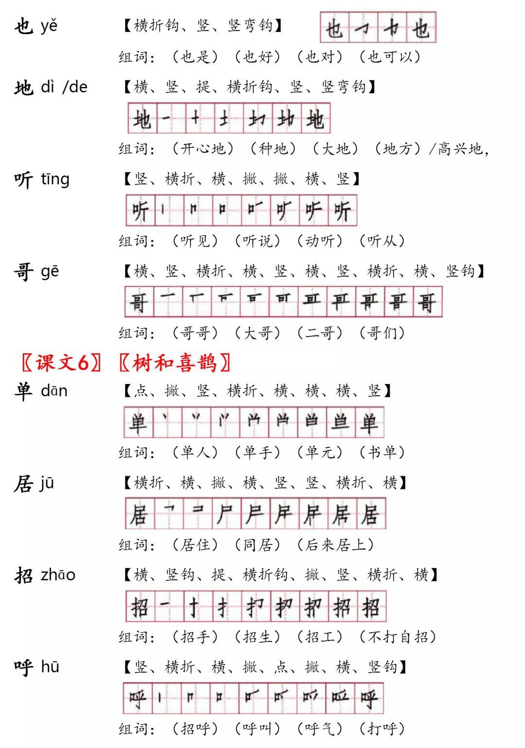 5 他 tā 河 hé 说 shuō 也 yě 地 dì 听 tīnɡ 哥 ɡē