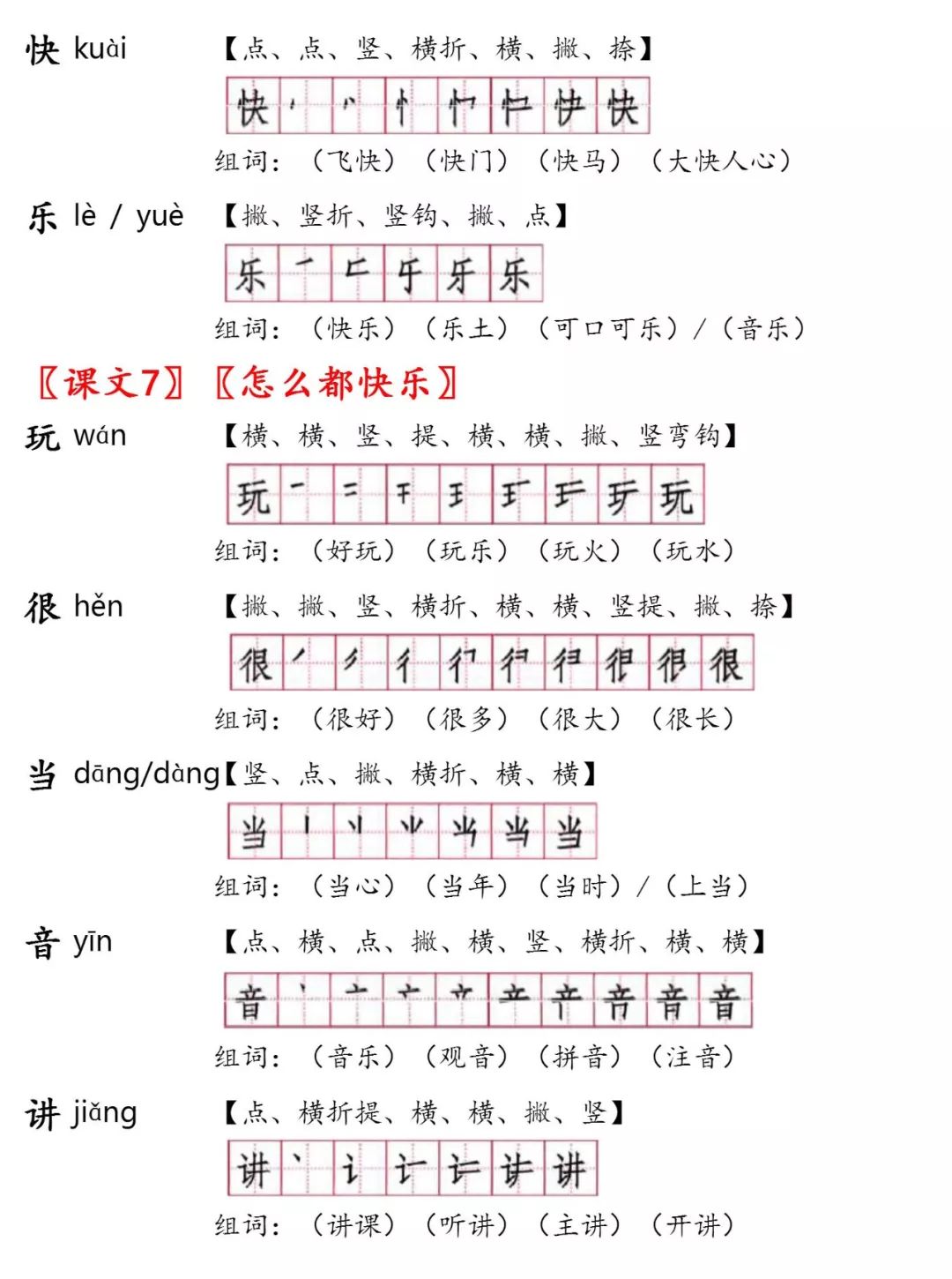 7 玩 wán 很 hěn 当 dānɡ 音 yīn 讲 jiǎnɡ 行 hánɡ 许 xǔ