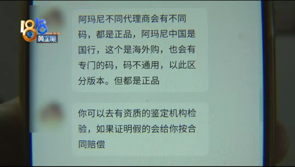 :“客服说让我们提供官方有效的假货证明(需要谁出具)需要阿玛尼的品牌方出具,我后来打电话给阿玛尼客服,我说有没有这样可以鉴定真伪的,他们说没有,