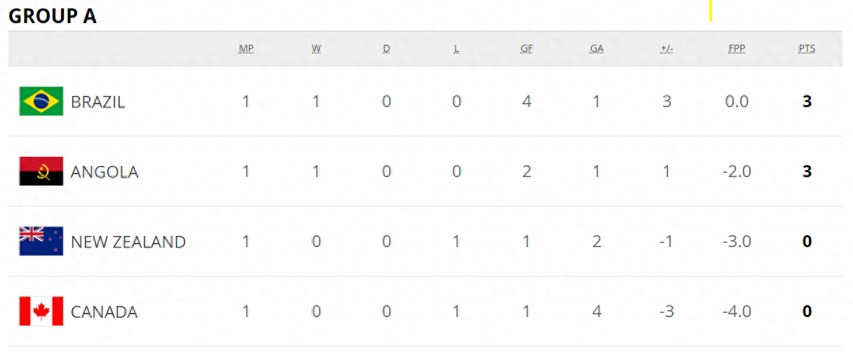 全场比赛,安哥拉占据绝对优势,全场共有23脚射门,新西兰则只有4脚。最终凭借开场第6分钟的进球和下半场对方的乌龙球,安哥拉2-1战胜对手。