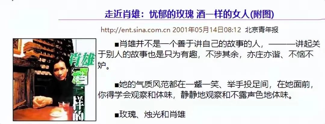 北京青年报 2001年05月14日《走近肖雄:忧郁的玫瑰 酒一样的女人(附图)》