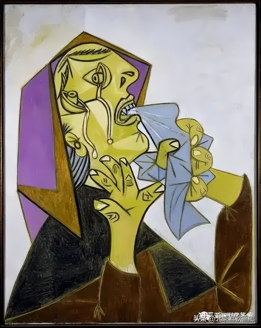 一眼看去,最直接的,也许是妇女们扭曲的表情,她们遭受着肉体上的痛苦和精神上的痛苦。“你可以看到,变形的形体是毕加索用来记录痛苦和苦难的手段,”瓦格纳解释道。艺术家通过尖锐的舌头表达他们的绝望和泪眼中的悲伤。