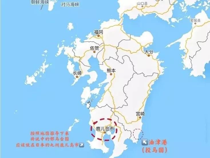 如果这个假说成立,剩下的就好办了,因为只要沿着九州岛往后绕,根据里程计算和水路计算,经伊都国、奴国、不弥国、绕到油津港那边去,那块地方就是投马国了,而投马国再绕到隔壁的邪马台国去,整个假说就行得通了,因此唐津港也可以排除,因为如果绕着唐津港走,一定有西行路线,而《三国志》并未记载。所以这样看来,传说中的邪马台国极大可能就是现在日本的九州鹿儿岛市