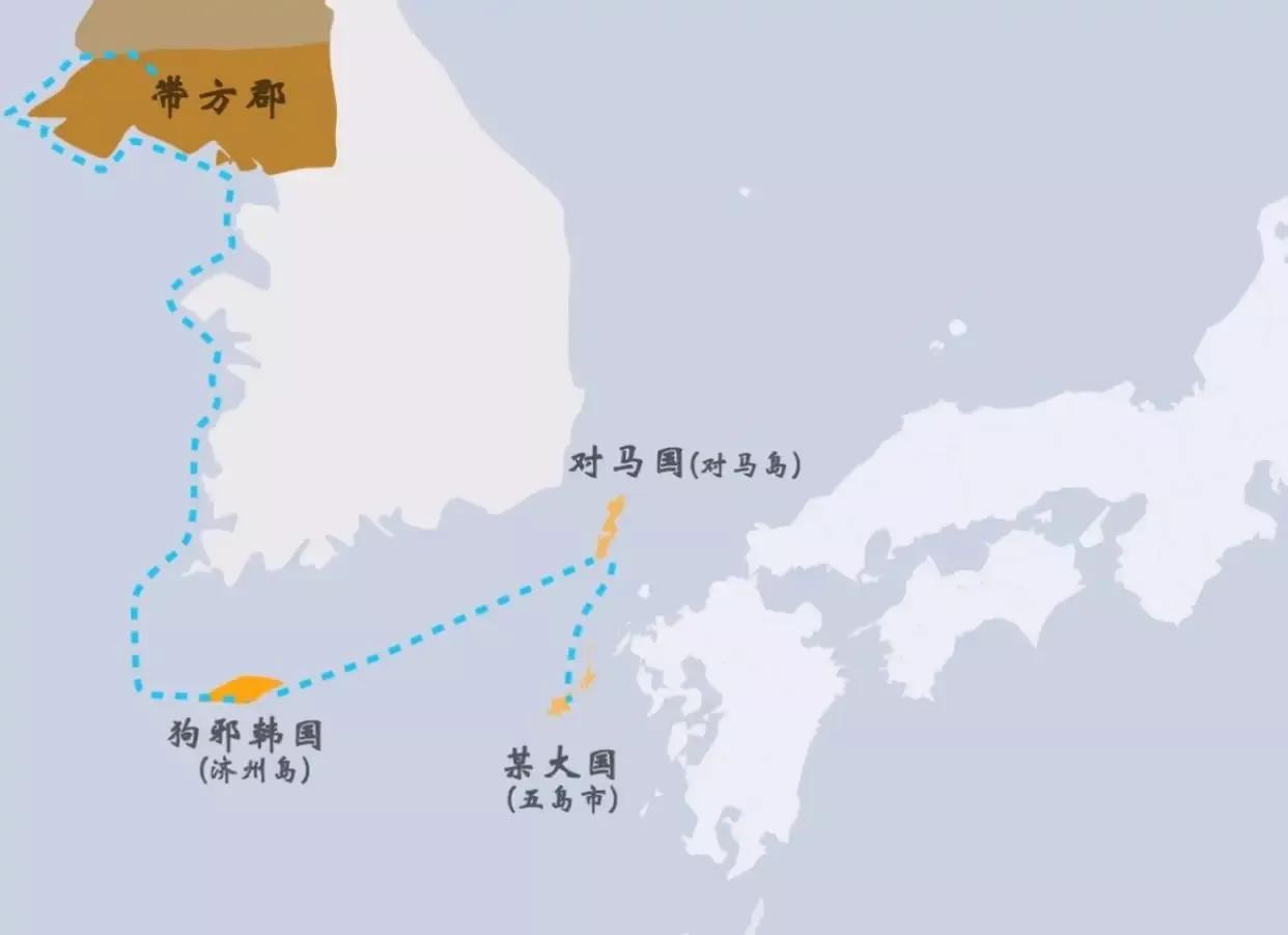 这段话到底是啥意思呢?就是说倭国在当时魏晋时期的带方郡东南位置的大海之中,驾船沿着海岸经韩国(这里的韩国指的是三韩,指的是马韩、辰韩、弁韩。这三个在朝鲜半岛地区建立的国家,现代的韩国人就有一部分三韩地区的人的血统,这个系列中以后我会专门做一期关于三韩的文章,小伙伴们记得来看哦),一会儿向南行驶,一会儿向东行驶,绕到韩国北岸的狗邪韩国去(是不是听着这名字感觉挺奇怪的,放心,后面还有一些更奇葩的国家名字)。